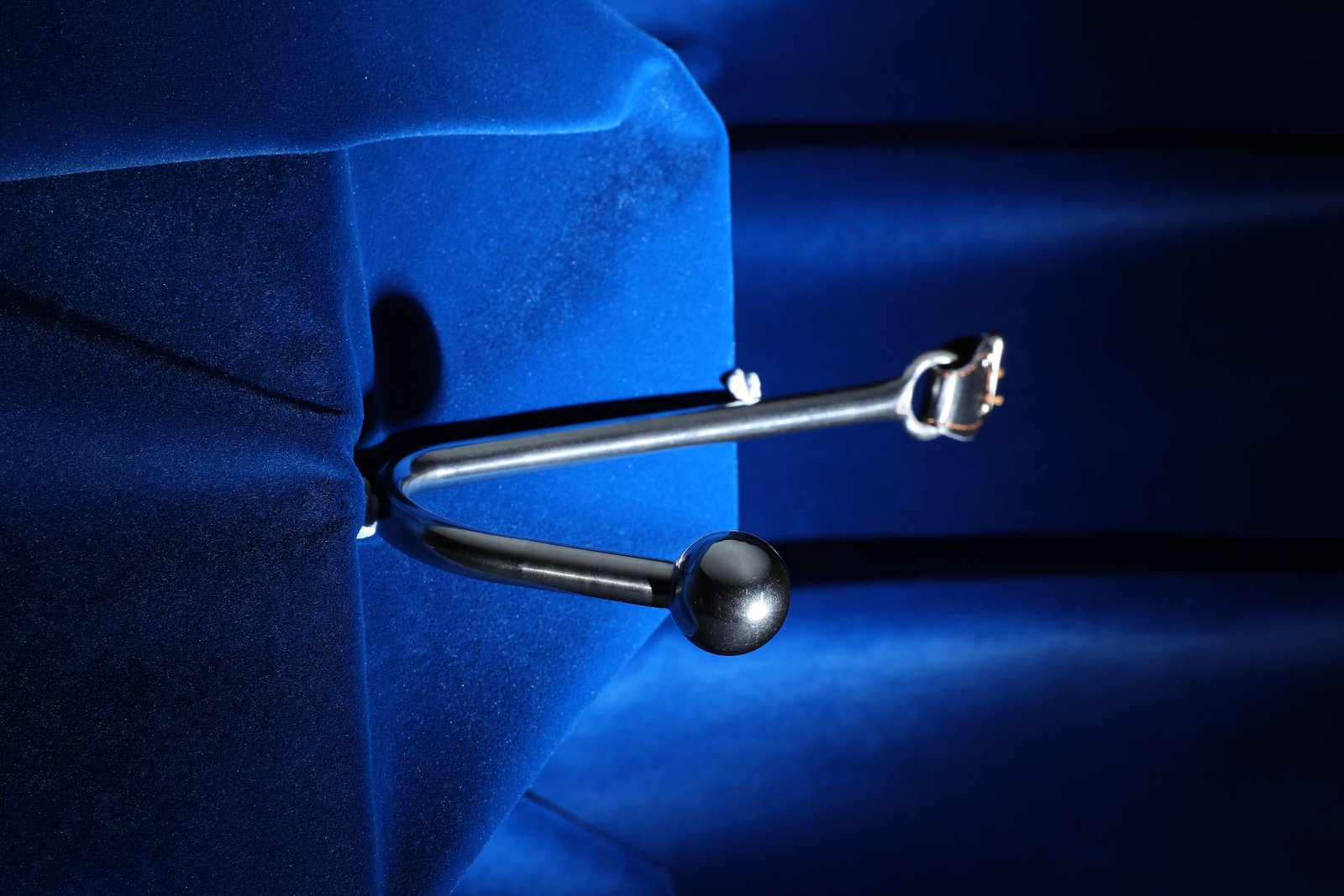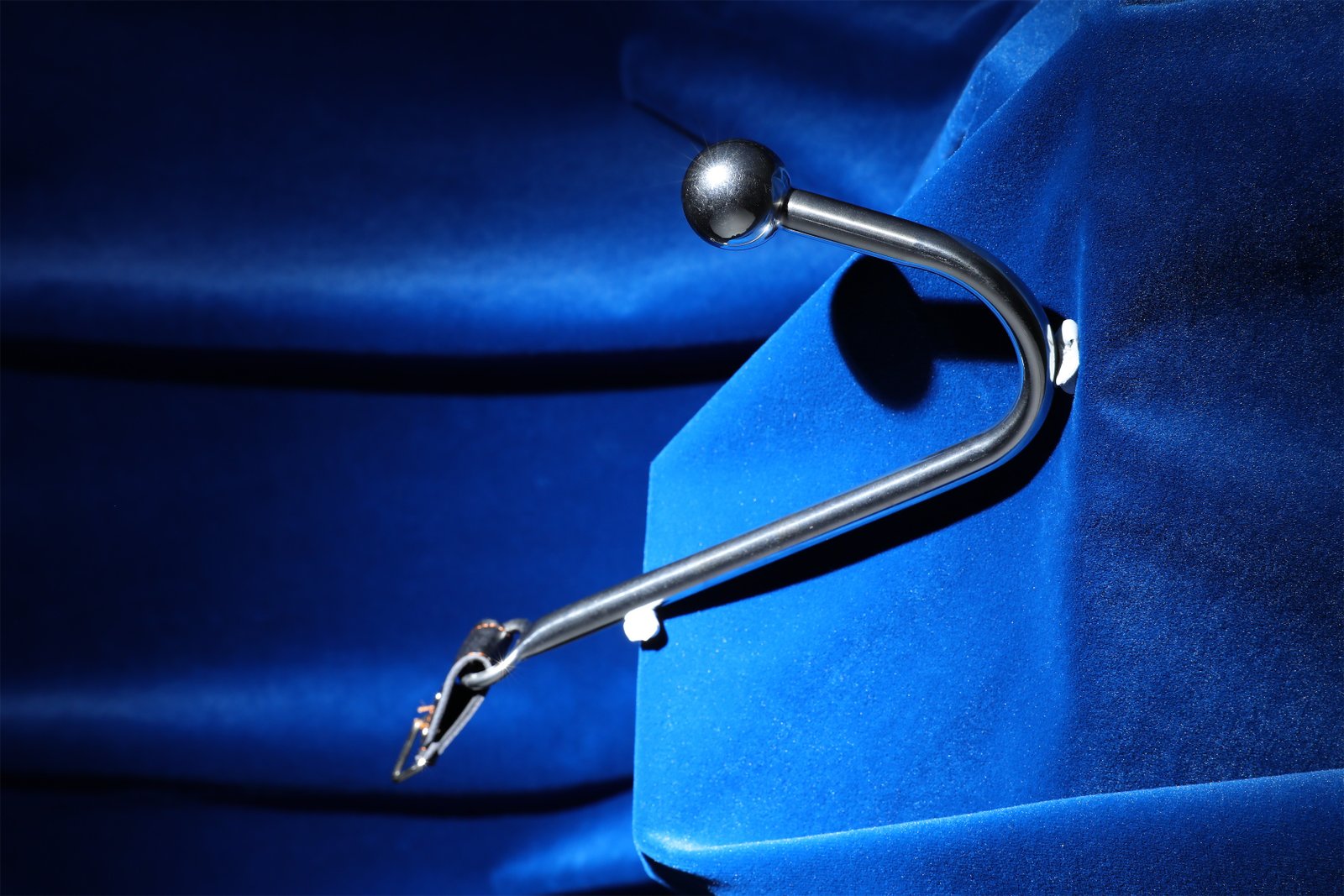 Accessories and dimensions: Mouth stoppers, handcuffs, corsets, single-ball anal hooks