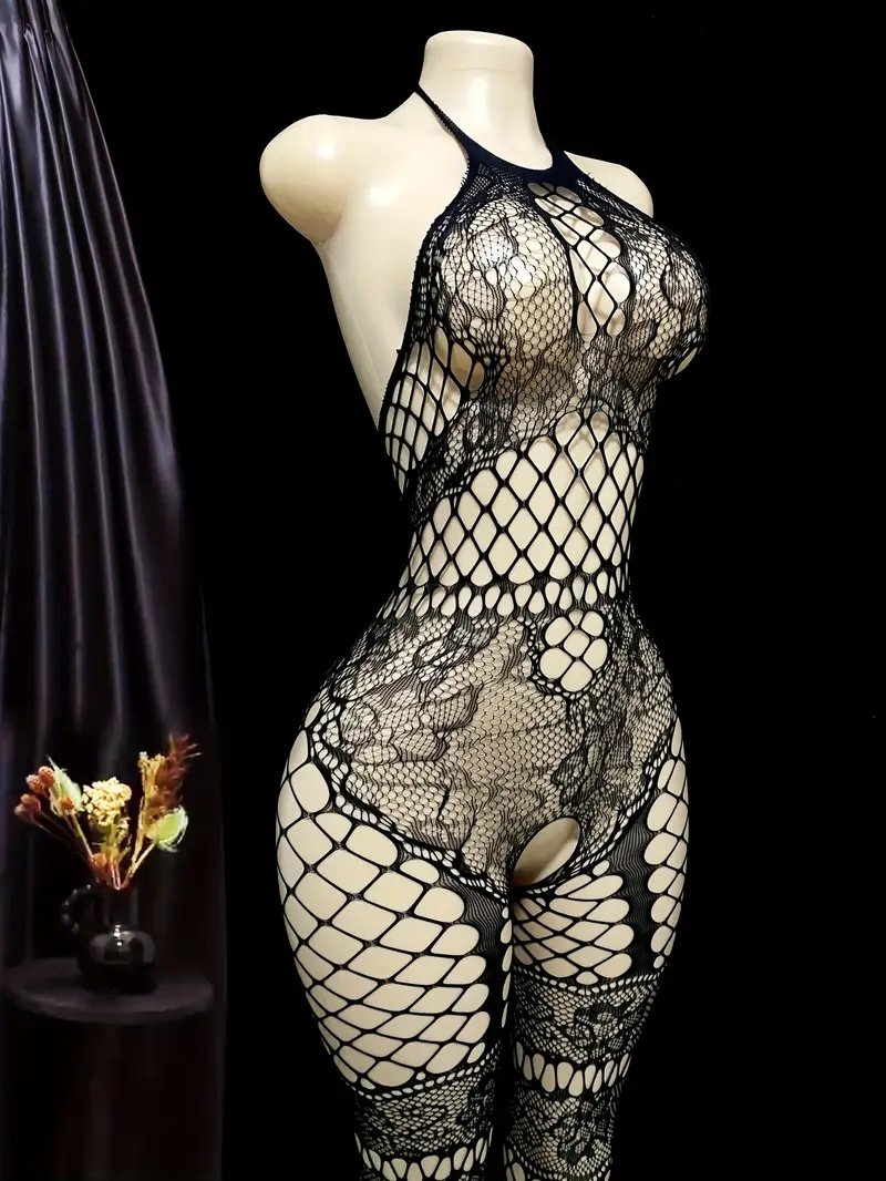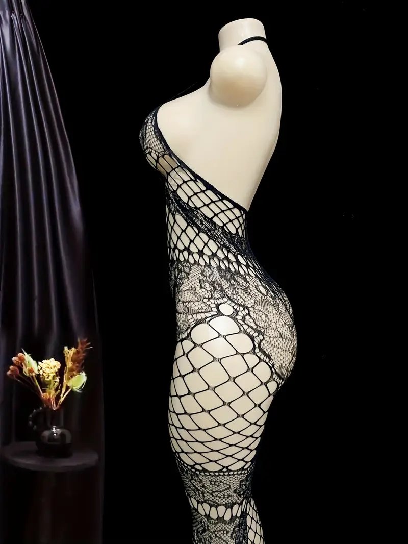 The sheer mesh fabric is spliced with lace and hollowed-out, and the deep V-neck design showcases an impressive curve. The waist-opening cut, combined with uniform elements, is both wild and alluring. The high-elasticity fabric fits the figure perfectly. Whether it’s a party or a private date, you can easily keep the center of attention.