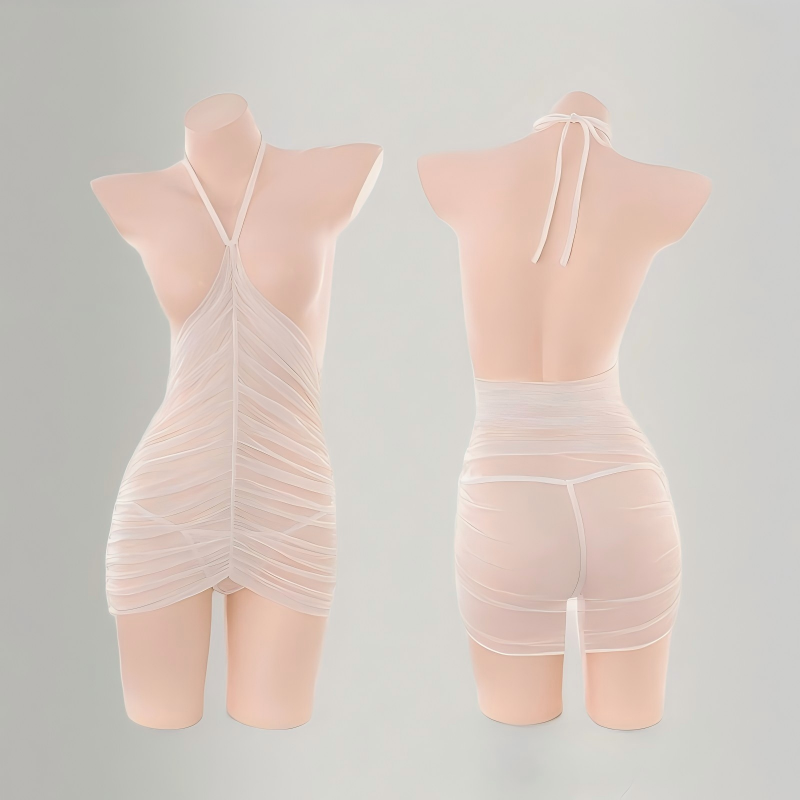The mesh design that is both revealing and concealing is paired with semi-transparent mesh to wrap around the striking curves. Three-dimensional cutting enhances the chest-to-waist ratio. As you walk, it stirs up ambiguous light and shadow, maximizing the pure desire and allure.