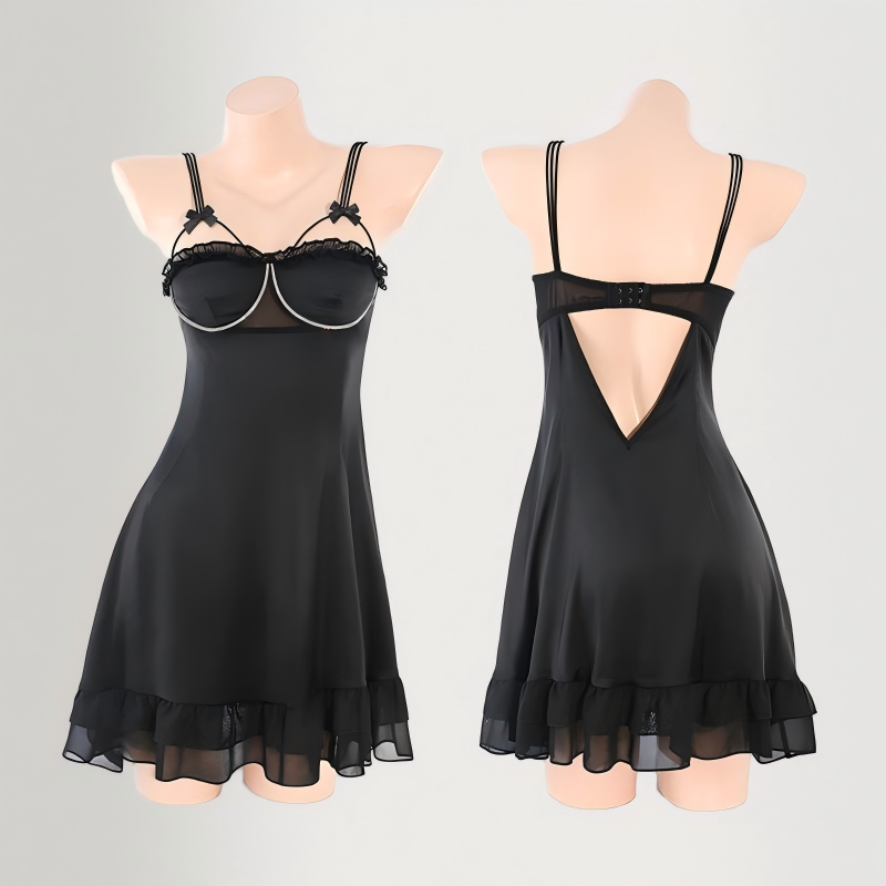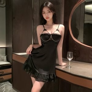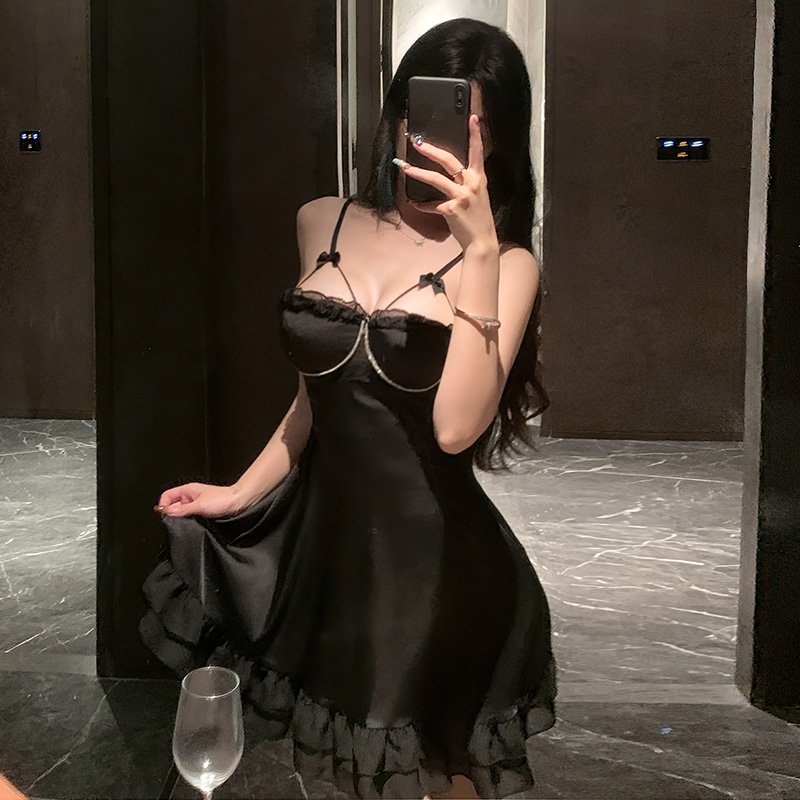 The touch is smooth and skin-friendly. The neckline is decorated with exquisite bright diamond chains, which are dazzling yet not ostentatious. It looks even more charming in the dim light at night. The flowing hem of the dress is naturally form-fitting, exuding a hint of sexiness in its laid-back style. It is suitable for both home and dates, fully showcasing a mature and elegant charm.