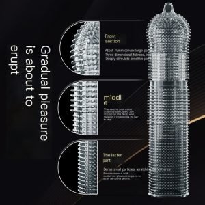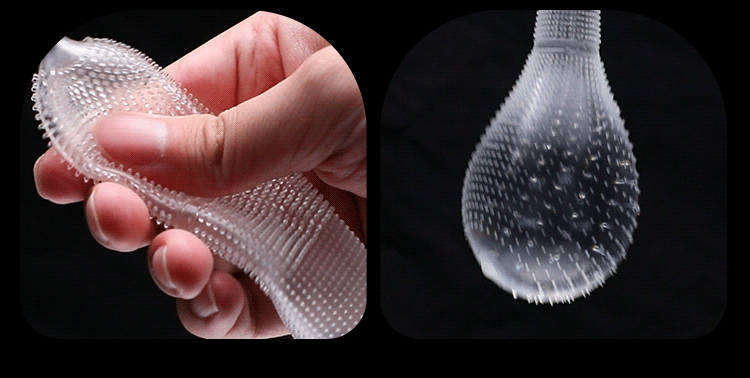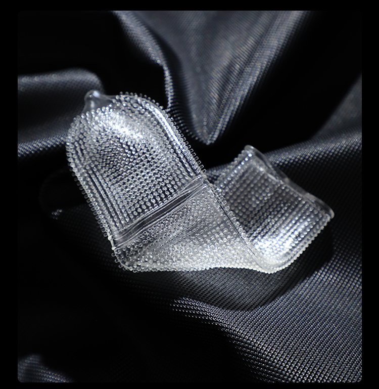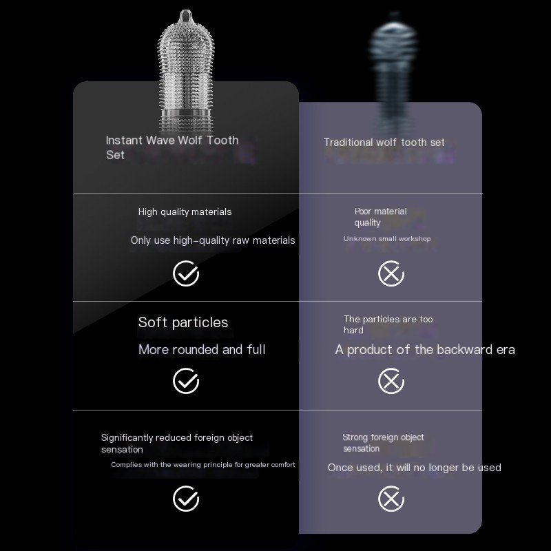 The convex wolf-tooth texture design enhances friction stimulation and boosts the pleasure of both parties. High-elasticity silicone material, soft and snug without slipping. Durable and easy to clean. Make intimate experiences more passionate and exciting!