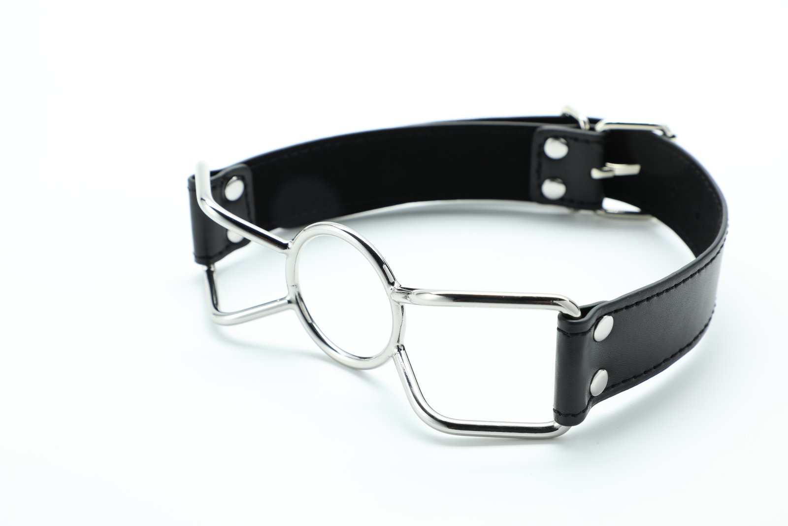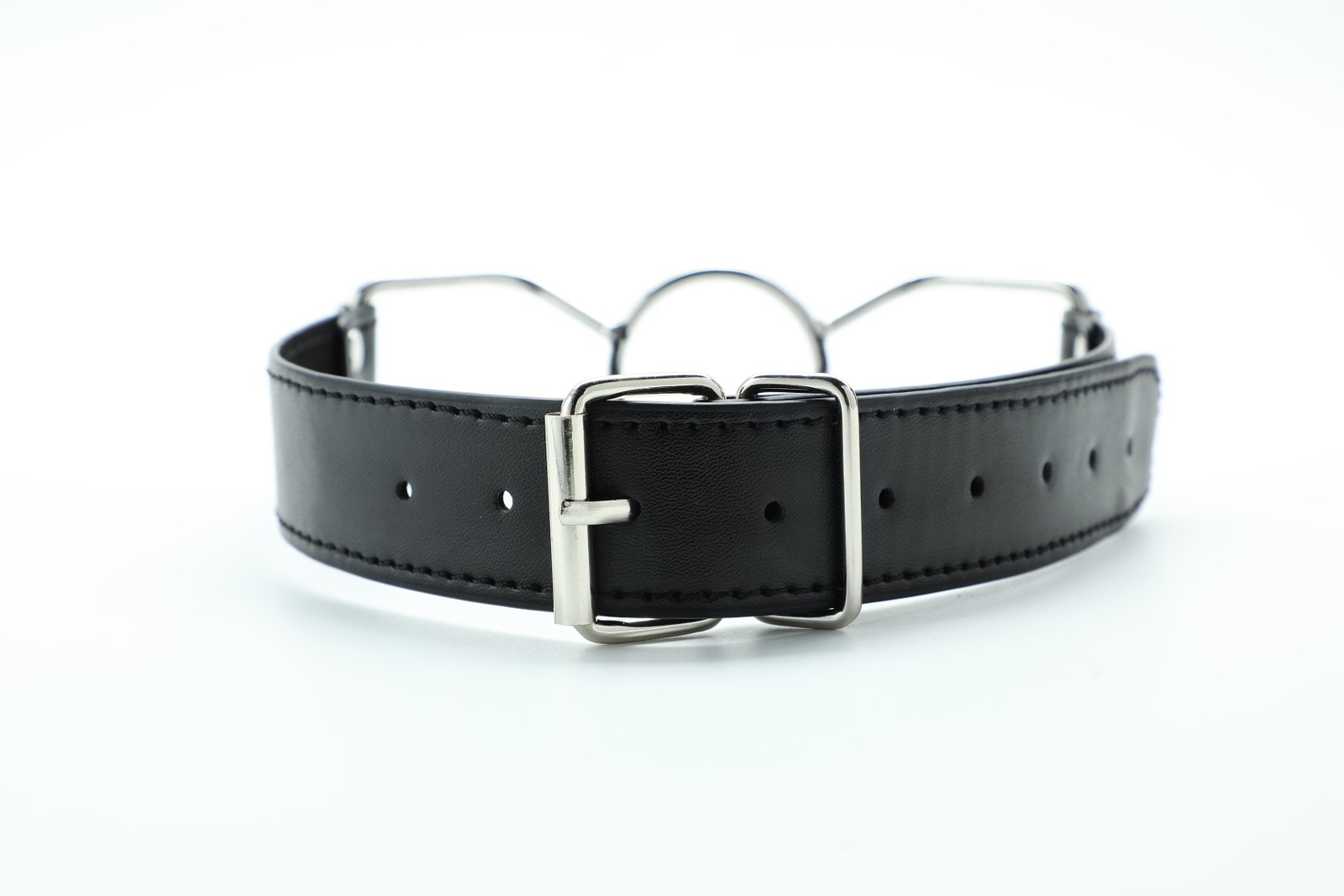 Product dimensions: Total length 63cm, mouth buckle length 14.5cm, mouth ring diameter 4.5cm, belt (buckle) : 18cm, belt (9 holes) : 30.5cm