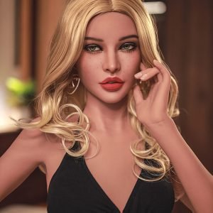 1. With long curly blonde hair, attractive innocent eyes, sexy lips with lipstick, small breasts, slim fit and perfect body curves, this realistic sex doll is full of temptation wherever she goes, you will be amazed by her face and body.