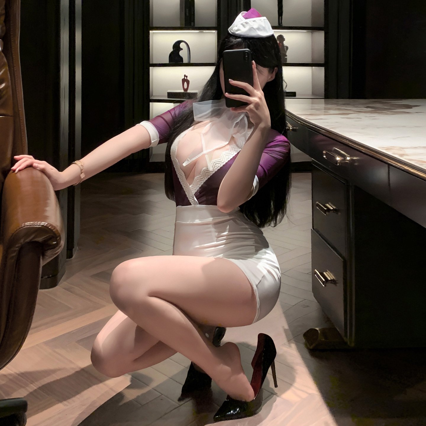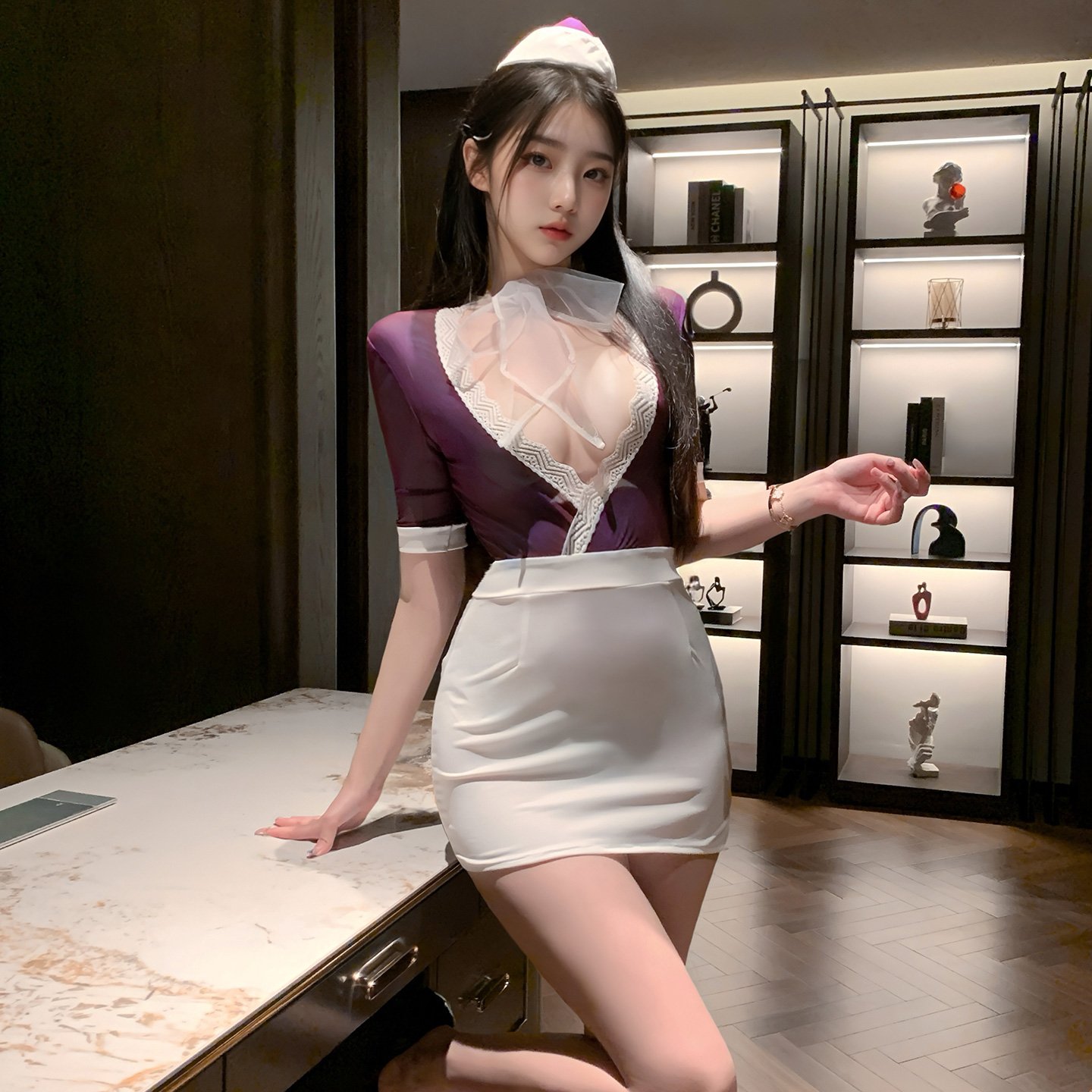 The deep V-neck Outlines a charming curve, and the figure-hugging design accentuates a graceful figure. The lightweight fabric sways with you, paired with aviation-themed badges, creating a pure and sensual interweaving. Exclusive flight routes are romantic, making every service overly sweet, with both elegance and allure.