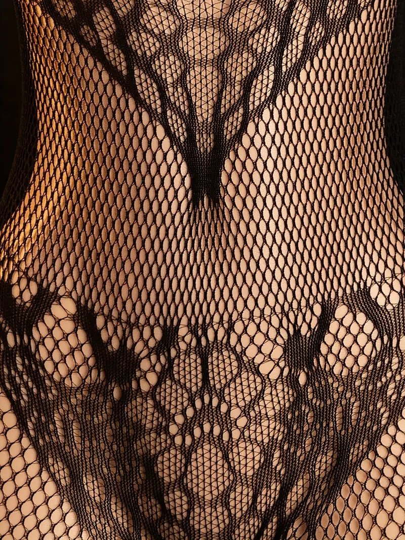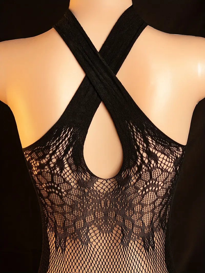 The sexy hollowed-out mesh fabric splicing and the halter design reveal the charming collarbone line. The open-cut design frees you from constraints, and the high-elasticity fabric fits all body types. The socks are integrated to accentuate the leg curves, and the deep V-shaped cutout on the back enhances the allure. At parties or private dates, it showcases fatal charm.
