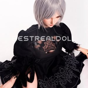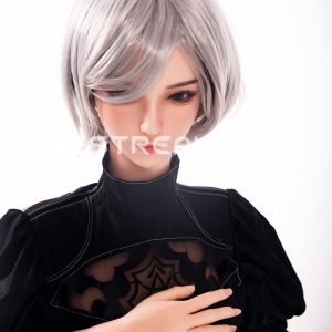 1. Momo is a cosplay anime sex doll with gray hair. She features with implanted gray hair, medium boobs, a thin waist, and a sexy butt, she likes wearing a black dress and long boots and uses a black silk scarf to cover her eyes, such cosplay makes her like a brave warrior.