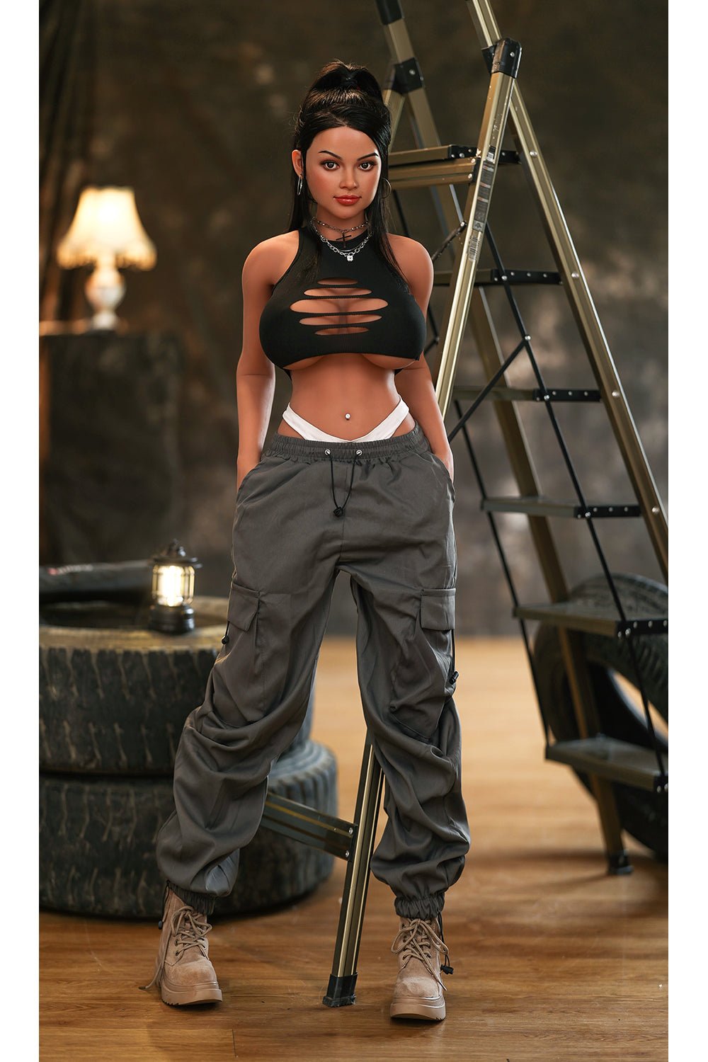 1. Kenzie is a cute BBW sex doll. She features with long black hair, bright eyes, huge breasts and sexy ass, the fashionable dress matches well with her super curve body.